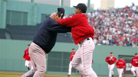 Clemens got outta the third and we stood tied 2-2. Top of the 4th, Martinez walks Posada. I start clapping, Dre waves his hand at me. Boom! Nick Johnson hits a single to left-field, and Jorge heads for third. It’s rally time! I’m standing up now, still clapping. Matsui scores Posada, and Johnson’s on second after a ground-rule double. I glanced at Dre, and he flipped me off. We started laughing. We stopped when Karim Garcia gets drilled by Pedro. “Oh, daaamn!” we both say in unison. “He’s throwing at his head!” I yell at the umps while pointing to the TV. “Nah, City, that one got away is all, he’s pissed about that RBI!” Dre tries to convince me as the umps warn Martinez. Dre smiles and says, “Dude, this is getting good.” Pedro winds up, and Alfonso Soriano gets a hit, scoring Nick Johnson. Garcia slides hard into Todd Walker, the Sox second baseman, knocking him down hard. The two men start shoving each other and the benches begin to clear. “Oh, shit! It’s about to be on!” I say to Dre as he stands up next to me. We both grab another tea and clink glasses, “To the rivalry” he says and I reply “Is there anything better?”
